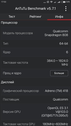 По результатам тестирований смартфон на мощной аппаратной платформе продемонстрировал даже более высокий уровень производительности, чем того можно было ожидать. По крайней мере, его результаты по данным теста AnTuTu оказались выше, чем у Nexus 5X, основанного на такой же SoC. Платформа топового уровня Qualcomm Snapdragon 808 оказывается способна конкурировать с другими современными флагманскими альтернативными решениями, такими как HiSilicon Kirin 935 и MediaTek MT6795. Snapdragon 808 демонстрирует результаты не менее высокие, чем у перечисленных SoC, как в комплексных, так и в специализированных графических тестах (по результатам популярного бенчмарка AnTuTu это в районе 50К очков). При этом Snapdragon 808 заметно уступает лидирующей на текущий момент Exynos 7420, используемой в максимально мощных современных аппаратах Samsung Galaxy S6/S6 edge/S6 edge+.