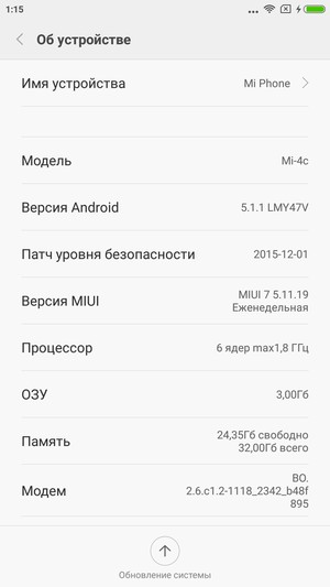 Программной оболочкой для всех смартфонов производства Xiaomi традиционно является интерфейс MIUI, устанавливаемый поверх штатной системы Google Android. В случае Mi 4c это Android ОС 5.1.1 с установленной поверх оболочкой MIUI 7. Оболочка очень хорошо знакома любителям мобильной техники, поскольку изначально сложилось так, что именно MIUI начала широко использоваться для кастомизации мобильных аппаратов разнообразных марок. Сейчас это место прочно заняла Cyanogen OS, но и MIUI все еще в ходу в этом качестве.
