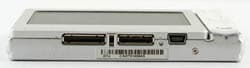 Сам плеер практически целиком металлический, пластиковая лишь торцевая часть по всему периметру. Задняя стенка окрашена в белый цвет. На верхнем торце устройства находится кнопка включения, кнопка переключения на внешний экран, индикаторы зарядки, включения и переключения на внешний дисплей, а также слот для SDHC-карт памяти, в который вставлена пластиковая заглушка.