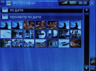 Окно просмотра организовано достаточно удобно. Кнопки, которые в видео- и аудио проигрывателях выполняют функцию быстрой перемотки, здесь выполняют зуммирование фотографии. Нужно заметить, что даже при его использовании мы наблюдаем плавность и почти полное отсутствие притормаживаний даже на больших файлах. К сожалению, нельзя отследить, когда же при увеличении (или наоборот, уменьшении) достигнут оригинальный размер изображения. О разрешении, как и о типе, размере файла, модели камеры, выдержке и апертуре можно узнать из свойств каждой фотографии. Поворот изображения осуществляется также быстро и удобно — эту функцию выполняют кнопки вверх и вниз. Разумеется, присутствуют различные настройки слайдшоу с эффектами смены кадров, формата отображения на экране. Изображения можно использовать в качестве фона меню плеера. Упорядочивать фотографии при помощи упомянутой ARCLib можно только по дате, установки «звездности» (рейтинга каждой фотографии) недоступны, да и смысла в них особого нет.