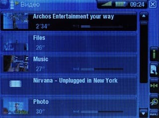 Доступ к тому медиа-контенту, который вы перенесли на ваш Archos, может быть осуществлен двумя способами. Первый — это выбор в главном меню необходимой функции: видео, музыка, фотографии. После выбора открывается библиотека с данными только определенного формата: в каждой категории будут отображаться только соответствующие ей файлы. Например, если в папке Video у вас лежит также и музыка, ее видно не будет, будут видны только видеоролики. В случае с категориями Видео и Фотографии, будут видны также и превью-изображения: для фотографий статичные, а для видео – динамические, где отображается часть конкретного выделенного в данный момент видеоролика, что может облегчить поиск нужного, если неизвестно имя файла.