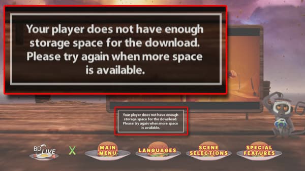 При попытке запустить BD-Live из POP-UP меню во время воспроизведения Blu-ray-диска плеер выдал следующее сообщение: