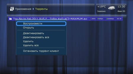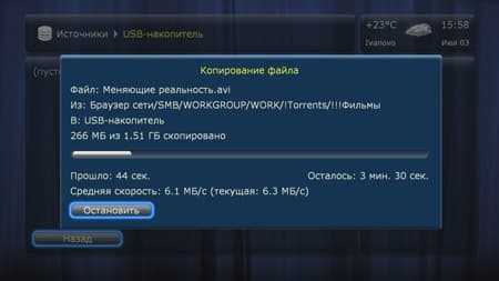 Закачиваемый файл располагается в папке Torrents на подключённом накопителе. Мощности процессора плеера вполне хватает на закачку торрента с одновременным воспроизведением Blu-ray-диска. Но тут, скорее всего, дело не столько в процессоре, сколько в грамотно распределённой загрузке. А за это целиком и полностью отвечает прошивка, написанная по всем правилам.