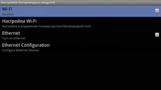 Самое время заглянуть в настройки. Их два вида: системные (относящиеся к операционной системе Android) и аппаратные. К сожалению, меню с Android’ными настройками не переведено на русский; аппаратные же настройки полностью локализованы.