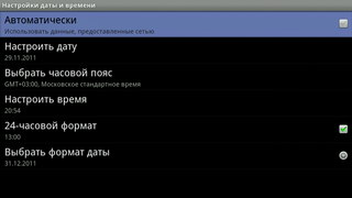 | В языковых и клавиатурных настройках определяются язык интерфейса и языки виртуальной клавиатуры. | Настройки даты и времени позволяют выбрать способ установки времени: автоматически (через Интернет) либо вручную. |