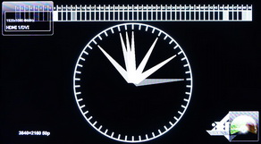 Для проверки корректности отображения видеофайлов с различной частотой кадров мы традиционно воспользуемся набором тестовых роликов с перемещающимися на одно деление за кадр стрелкой и прямоугольником (см. Методику тестирования устройств воспроизведения и отображения видеосигнала). При тестировании использовалось видео с размером кадра 1920×1080, но разными частотами: от 24 до 60 кадр/сек, а также ролики с размером кадра 4K и частотой от 24 до 60 кадр/сек. Считаем, что настало время включить в тестирование эти сверхтяжелые видеофайлы — высокочастотные 4K. А почему нет? Соответствующие видеокамеры на рынке уже имеются, так не пора ли и плеерам подтягиваться до уровня камер? Да, голливудские фильмы в 4K и с частотой 60 кадров в секунду мы вряд ли увидим даже в отдаленном будущем, но от этого «хотелки» прокатчиков ничуть не становятся правилом, которого должны придерживаться все без исключения.