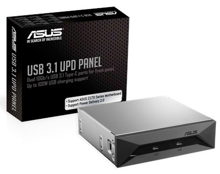 USB 3.1 UPD PANEL выполнена в виде модуля, устанавливаемого во внешний отсек компьютера типоразмера 5,25 дюйма. В таком случае подключение двух расположенных на фронтальной панели портов USB 3.1 Type-C осуществляется посредством разъема SATA Express материнской платы.