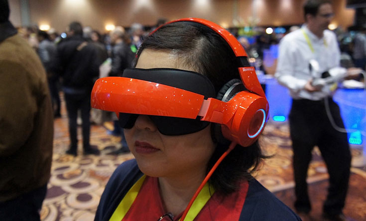На выставке CES 2016 была показана складная видеогарнитура Royole-X, представляющая собой персональный кинотеатр на голове у пользователя.