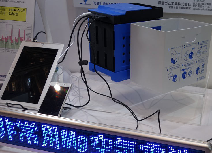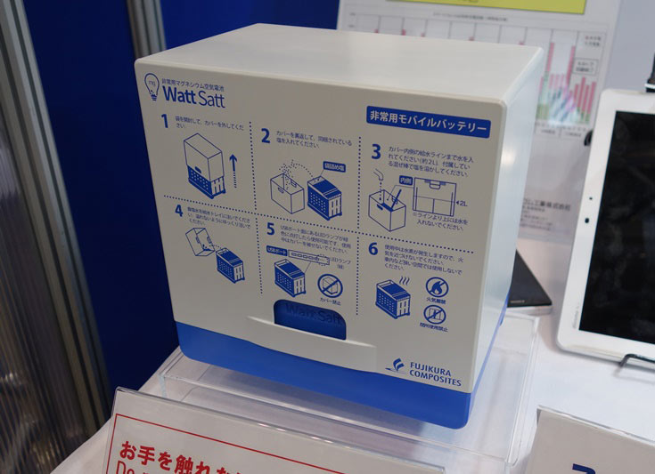 Специалистами японской компании Fujikura Rubber разработан металло-воздушный первичный источник тока с магниевым отрицательным электродом, предназначенный для использования в чрезвычайных ситуациях. Он был продемонстрирован на недавней международной выставке, посвященной аккумуляторам, которая прошла в Токио.