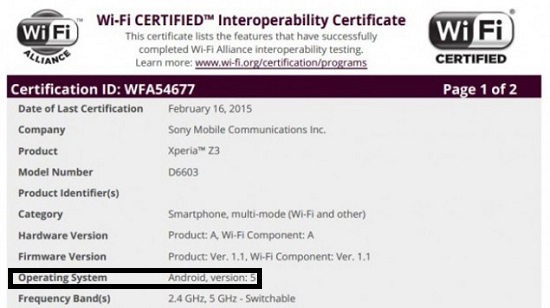 Но источник привел данные, свидетельствующие о скором выпуске обновления для Xperia Z3. На страницах портала Wi-Fi Alliance, организации, занимающейся сертификацией новых устройств, появилось сообщение о прохождении этим смартфоном тестирования с прошивкой на базе ОС Android 5.0. Сертификация произошла 16 февраля, вероятнее всего для нее Sony представила окончательную версию прошивки, так что ее появление для обычных пользователей не за горами.