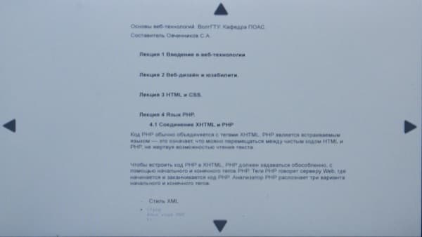 Как мы уже сказали, в этой книге — или, правильнее сказать, в медиаридере, — используется TFT-экран с матрицей типа TN. О его плюсах и минусах по сравнению E-Ink в очередной раз повторяться не будем. Что касается того, удобно ли (и возможно ли вообще) читать с такого экрана, то тут всё очень субъективно. Кто-то читает с ЖК-экранов и не испытывает из-за этого особенных проблем, кто-то же жалуется на боль, резь в глазах, ухудшение зрения и прочие подобные неприятности. Можно лишь сказать, что за счет того, что экран матовый, на нем не отвлекают блики. Зернистость у дисплея заметная — все-таки разрешение 800×480 пикселей маловато для 7-дюймовой диагонали (по современным меркам). Углы обзора у дисплея хорошие, за исключением одного — при горизонтальной ориентации, если смотреть снизу вверх, инверсия цвета наступает достаточно быстро.