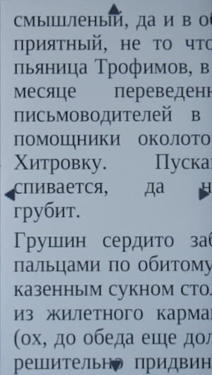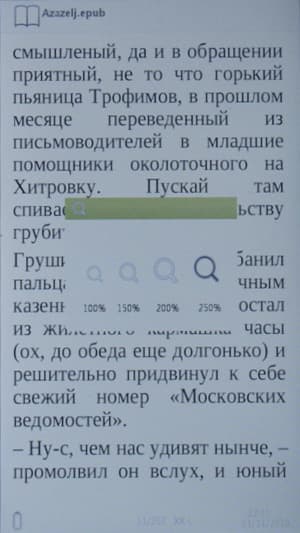 Но если же это отсканированная книга, удобно ее читать не получится. Можно попробовать увеличить картинку, но тогда появляется необходимость прокрутки вправо-влево. В таких случая обычно спасает переворот экрана в ландшафтный режим, но в данной ситуации это не поможет: почему-то страница крайне слабо увеличивается в горизонтальном режиме и максимального уровня зуммирования не хватает, чтобы читать текст.