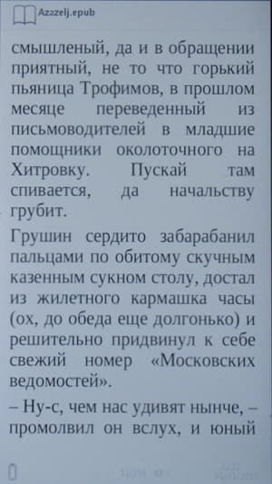Теперь давайте посмотрим, как именно книга отображает файлы поддерживаемых форматов. К сожалению, ни для одного из форматов не поддерживается просмотр оглавления. Не поддерживается также переход по сноскам, нет переносов текста.