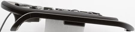 Клавиатура несколько отличается по конструкции от большинства моделей, с которыми нам приходилось встречаться. Во-первых, вместо привычных раскладывающихся ножек в задней части «доски», предназначенных для регулирования угла наклона клавиатуры относительно стола, производитель предпочел задать его жестко. Минус очевиден — если вам данное положение неудобно, то с ним ничего сделать не получится. С другой стороны, не так уж он и велик с учетом того, что и в обычном-то случае доступны как правило лишь два варианта, причем большинство пользователей предпочитает данные ножки выдвинуть и далее не трогать. А если дело обстоит так, то почему бы не сделать более красивой и устойчивой всю конструкцию, отделавшись от двух механических узлов, способных сломаться? :)