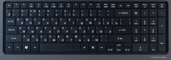 Дополнительное место в широком корпусе разработчики решили израсходовать на блок клавиш, называемый обычно наборным полем. В действительности, хорошее решение, понравится и тем, кто работает с электронными таблицами (и вообще: с числовыми данными), да и в играх можно использовать эти клавиши в качестве полноценной «крестовины», особенно с учетом того, что основные курсорные клавиши не отличаются в данном случае ни большими размерами, ни просторным расположением. Ход у клавиш по меркам ноутбучных клавиатур достаточно большой, при быстром наборе текста, если ноутбук стоит на жесткой поверхности, возникает своеобразный звук, впрочем, не сравнимый по громкости с «кликом» стандартных настольных клавиатур. Углублений в центре клавиш нет, впрочем, как и модных сейчас каемок-разделителей между клавишами.