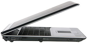 Г-образной формой крышки и отсутствием защелки V6V напоминает мультимедийный центр ASUS W1, но этот ноутбук тоньше, что визуально подчеркивается скошенной сверху и снизу формой передней части. Цветовое решение весьма строгое и эффектное. Смотрится ноутбук элегантно, и, что немаловажно, оригинально перепутать с моделью другого производителя сложно.