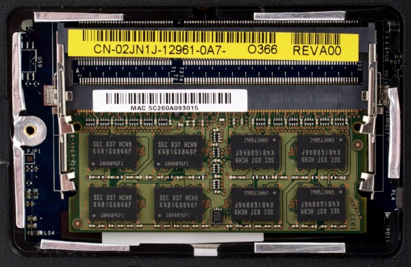 Ноутбук имеет только один слот для установки модуля оперативной памяти, поэтому режим работы одноканальный, поддерживается до 4 ГБ (в нашем случае было установлено 2 ГБ), частота памяти DDR3-800. Используемому процессору, судя по результатам тестов, такой пропускной способности хватает.