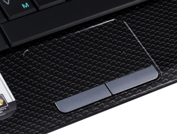 Тачпад имеет слегка шершавое покрытие, хотя визуально это незаметно, и слегка утоплен в корпус. Две раздельные клавиши нажимаются очень четко. Устройство оставило положительное впечатление. Надо еще отметить, что обладатели больших ладоней вполне смогут печатать, не отключая тачпад, поскольку основание ладоней будет приходиться на область не самого тачпада, а кнопок, которые случайно нажать сложно.