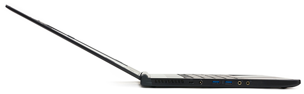 На левом торце корпуса расположены два порта USB 3.0, два аудиоразъема типа миниджек, разъем питания и отверстие для кенсингтонского замка.