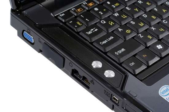 Индикаторы разделены на две группы. Индикаторы состояния ноутбука вынесены в крышку и видны с обеих сторон — и при закрытой и при открытой крышке. Идея хорошая, но ее немного портит реализация — индикаторы смотрятся откровенно дешево.