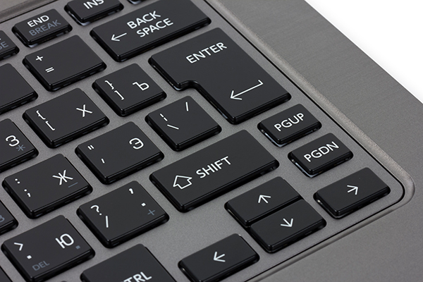 В ноутбуке Toshiba Portege Z30-A-M5S используется уже ставшая традиционной для современных ноутбуков клавиатура островного типа с увеличенным расстоянием между клавишами. Отдельного цифрового блока (NumPad) нет, но зато имеется подсветка, которую можно отключить.