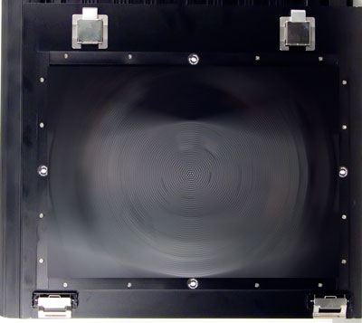 Также возникает некоторое неудобство при попытке открыть декоративную дверцу, в связи с тем что подцепить ее можно только с одной стороны — с правой стороны корпуса, но даже тут никаких выемок для пальцев не предусмотрено, поэтому оперировать приходится ногтем, преодолевая весьма немалое усилие прижима магнитных держателей, что, кстати, может привести к травме. Толщина рамной части дверцы — 2,5 мм. Небольшой люфт петель дверцы в вертикальной плоскости присутствует, но абсолютно не мешает и не досаждает.