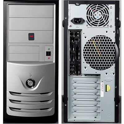 У нас на тестировании была модель с 450 Вт блоком питания Power Man с легко запоминающимся названием IP-S450T7-0. Решение бюджетное по всем параметрам. В угоду низкой стоимости, пришлось пожертвовать даже тумблером включения — его здесь просто нет, и полное обесточивание можно произвести только за счет выдергивания шнура. Блок питания охлаждается вентилятором типоразмера 80 мм, скорость которого практически никак не регулируется. Дополнительный вклад в шумообразование вносит штампованная решетка. В итоге, БП запросто может стать самым шумным компонентом во всей системе, что не столь критично в офисной обстановке, но заметно и неприятно в условиях домашнего использования.