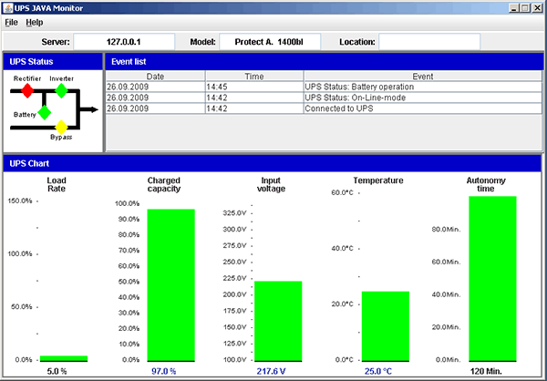 ПО позволяет графически отобразить состояние ИБП, настроить вид отображения из интерфейса программы нельзя.