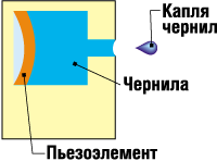 Эта технология основана на мгновенном впрыскивании капли чернил через микроскопическое отверстие (дюзу), ряды которых расположены на движущейся вдоль бумаге каретке. Чем меньше дюзы, и чем меньше расстояние между ними, тем выше разрешение. Для мгновенного впрыска чернил используются в основном две технологии. Первая — это более старая термическая, когда капля чернил выталкивается пузырьком газа, образующимся при быстром нагреве капли специальным термоэлементом. Вторая — более современная — пьезоэлектрическая, при которой капля выталкивается за счёт резкого изменения размеров пьезоэлемента при подаче на него электрического импульса.