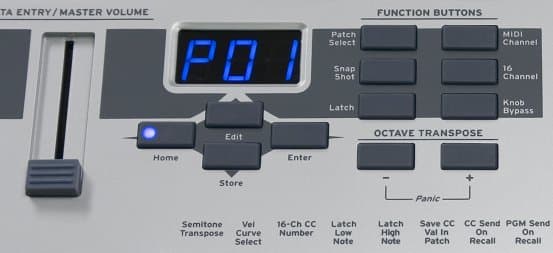 Клавиатура Xboard 61 оснащена трехсегментным светодиодным дисплеем, на котором отображается работающий режим и значение используемого контроллера. Очень удобно, что абсолютно все кнопки имеют индикацию. Это позволяет видеть, какие именно кнопки нажаты в данный момент. Например, при использовании зонного режима клавиатуры или определенной конфигурации контроллеров. В Xboard 61 предусмотрено 16 пресетов энергонезависимой памяти. С помощью кнопок, расположенных с правой стороны клавиатуры, осуществляется переключение режимов. Таким образом, исключая педаль и колеса pitch bend, и modulation назначаемыми контроллерами в клавиатуре являются только вращающиеся регуляторы.
