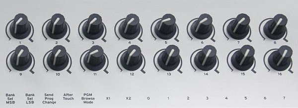 - 16 назначаемыx вращающихся MIDI-регуляторов;