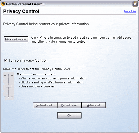 Norton Personal Firewall 2005 является персональным файрволом и предназначен для защиты компьютера от разного рода угроз при работе в интернете и в локальной сети. Norton Personal Firewall 2005 ограничивает доступ к компьютеру из сети и позволяет контролировать доступ в сеть программного обеспечения, установленного на компьютере. Помимо этого, он может контролировать исходящие данные и пресекать отправку нежелательной информации. Приобрести продукт можно в он–лайн магазине Symantec или у дистрибьюторов.