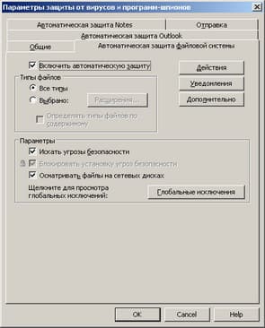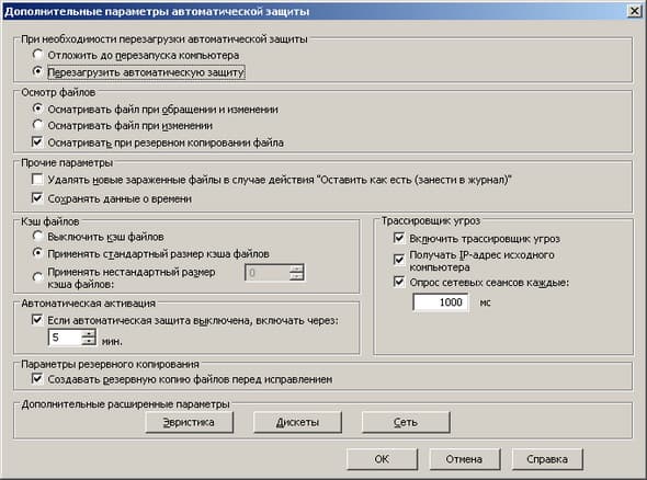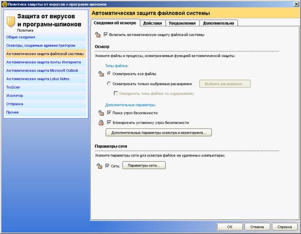 Рисунок 1.9c: Endpoint Protection Client – Antivirus and Antispyware Protection – Auto-Protect Advanced Options – Расширенные настройки сканирования в Реальном времени (продублированы на стороне управляющего сервера)