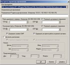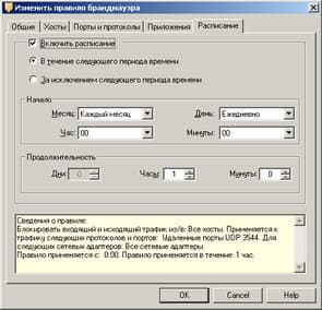 Рисунок 1.13d: Endpoint Protection Client – Network Threat Protection – Configure Firewall Rules – Edit Firewall Rule – Настройки доступа для приложений и графика применения правил