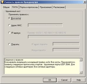 Рисунок 1.13b: Endpoint Protection Client – Network Threat Protection – Configure Firewall Rules – Edit Firewall Rule – Базовые настройки и настройки хостов