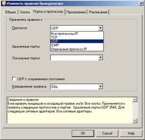 Рисунок 1.13c: Endpoint Protection Client – Network Threat Protection – Configure Firewall Rules – Edit Firewall Rule – Настройки портов и протоколов