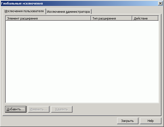 Рисунок 1.15: Endpoint Protection Client – Change settings – Centralized Exceptions – Пользовательские настройки исключений сканирования сигнатурной и проактивной защиты, а также просмотр исключений, заданных Администратором системы