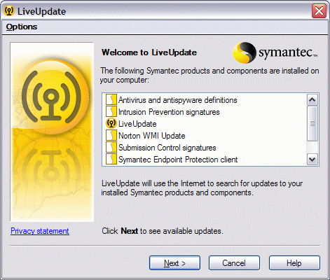 Рисунок 1.17: Endpoint Protection Client – Live Update – Обновление по запросу через сервера Symantec