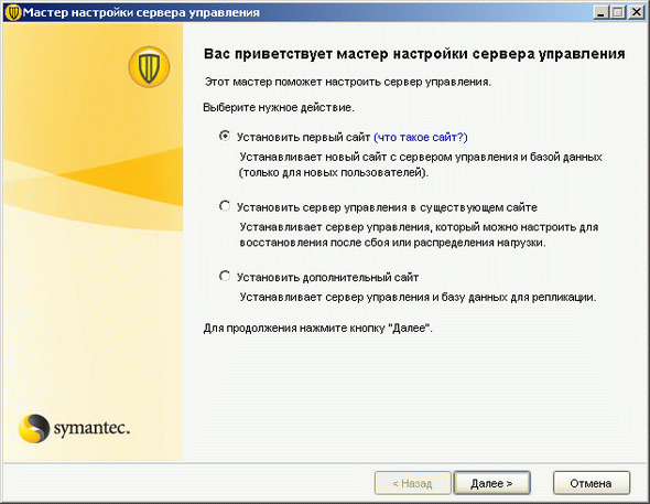 Надо отметить, что пакет установки содержит в себе инструментарий автоматической миграции и Севера и Клиентов с таких версий ПО Symantec, как Symantec Antivirus Corporate Edition 9.x, 10.x и Symantec Client Security 2.x, 3.x, включая перенос конфигураций и политик.