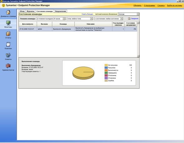 Рисунок 2.5c: Endpoint Protection Manager Console – Monitors Screen – Command Status – Панель доступа к информации о статусе команд, передаваемых от управляющего сервера к клиентским приложениям