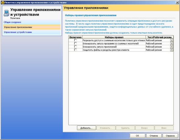 Рисунок 2.12a: Endpoint Protection Manager Console – Policies – Application and Device Control – Одна из наиболее интересных и важных функций нового продукта – возможность контроля, анализа и запрещения использования приложений и устройств, новая технология, интегрированная в продукт