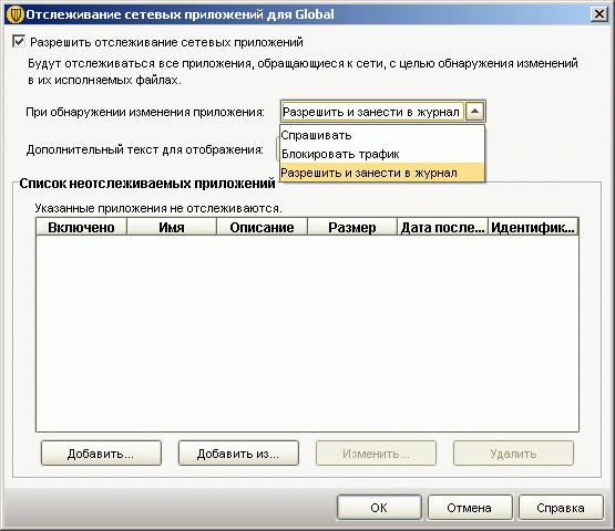 Рисунок 1.12a: Endpoint Protection Client – Network Threat Protection – View Application List – Просмотр и настройка доступа приложений и процессов к сетевым ресурсам