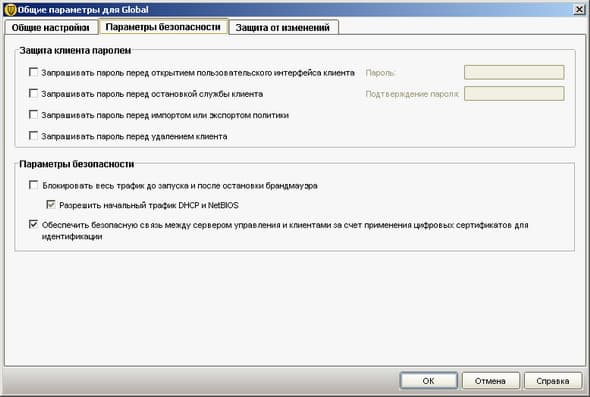 Рисунок 1.6: Endpoint Protection Client – Change settings – Сводная панель настроек компонентов защиты и управления