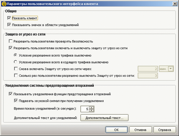 Рисунок 1.11b: Endpoint Protection Client – Network Threat Protection – Настройка алгоритмов анализа и контроля сетевого трафика, защиты от разного класса атак; новая технология, интегрированная в продукт (продублированы на стороне управляющего сервера)