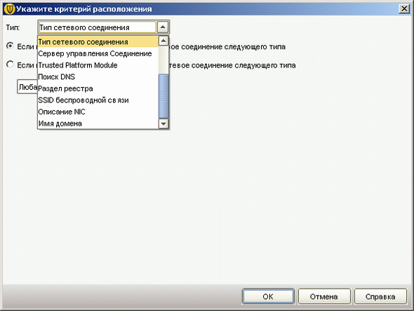 Рисунок 2.23b: Endpoint Protection Manager Console – Clients – Policies – Manage Locations – Specify Location Criteria – Неполный список критериев, по которым возможно определении местонахождения клиента