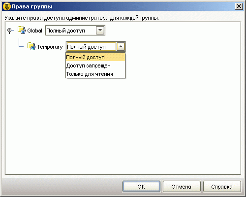 Рисунок 2.26b: Endpoint Protection Manager Console – Admin – Administrator – Add Administrator – Group Rights – Предоставляемые возможности разграничения прав доступа Администраторов системы к группам