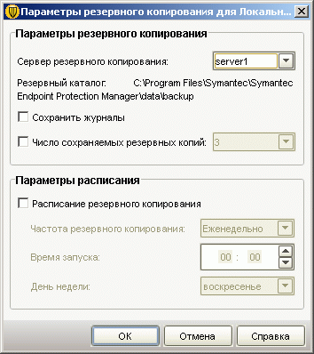 Рисунок 2.30: Endpoint Protection Manager Console – Admin – Servers – Server Properties – Предоставляет возможность настройки локальной системы управления, доступа к системе управления, интеграции с LDAP серверами и др.Рисунок 2.31: Endpoint Protection Manager Console – Admin – Servers – Backup Settings – При использовании внутренней Базы Данных позволяет настраивать расписание резервного копирования Базы данных (при использовании БД MS SQL резервное копирование обеспечивается встроенными средствами MS SQL)