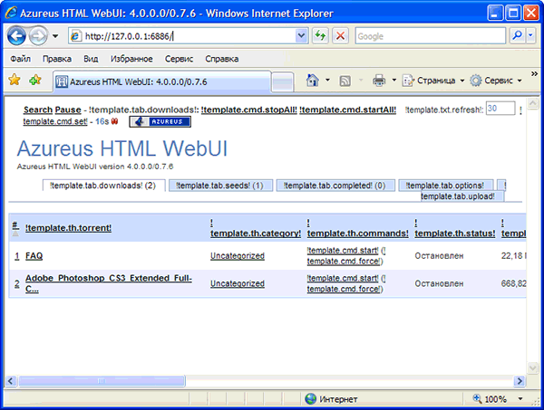 Рабочее окно и все диалоговые окна лишены какой-либо графики. Минимум украшений. Программа также не имеет различных авторских услуг, чем прославился Vuze, рассмотренный чуть выше. Здесь все ограничивается стандартной загрузкой и раздачей торрентов.
