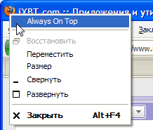 Еще одна деталь: в контекстном меню каждого окна появляется новый пункт. Он позволяет помещать любое окно поверх остальных окон.