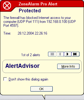 - Возможность обратиться к базе на сайте Zone Labs для получения описаний распространенных компонентов, приложений и помощи в выборе вариантов ответа на запросы файрвола.